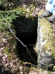 square hole in the ground. It looks like it might be an entrance to an